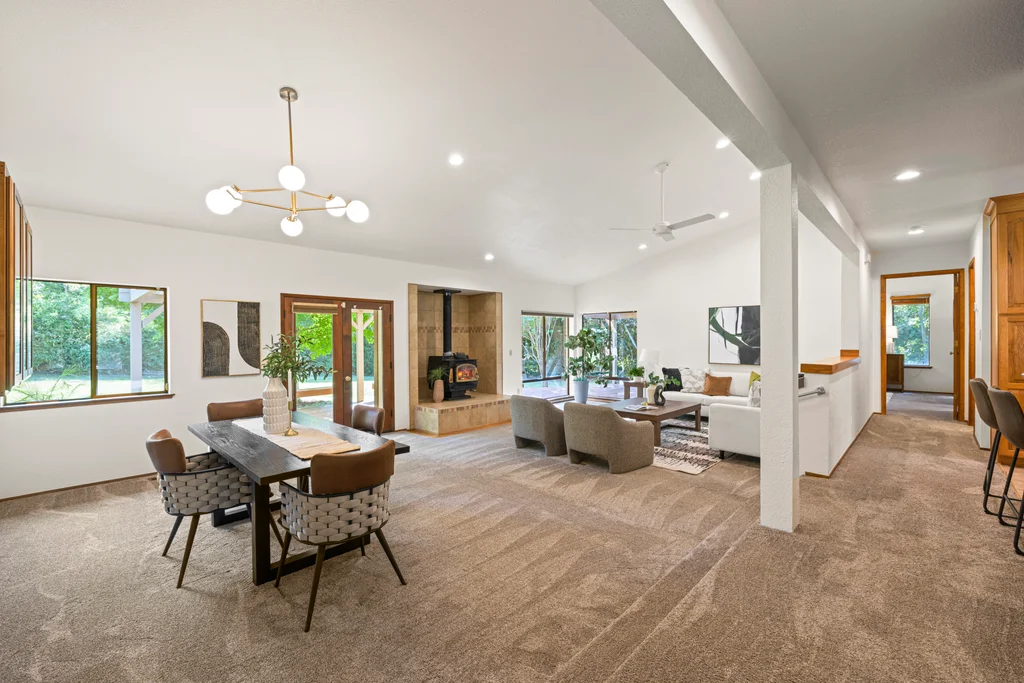 The home is complete with a laundry room, an attached two-car garage, and a standout detached oversized two-car garage with a pull-through option—perfect for car enthusiasts, storage, or hobbies. The home sits at the end of a private driveway on a park-like lot surrounded by grass and mature trees. Located just a short walk to the American River, and close to Ancil Hoffman Park. Carmichael is one of Sacramento County’s most desirable communities. Known for its tree-lined streets, spacious lots, and easy access to parks and trails, it provides a small-town feel with the convenience of being close to Downtown Sacramento.